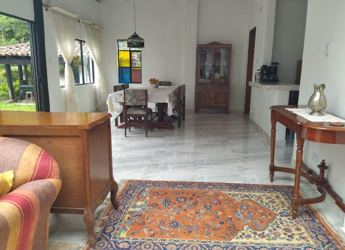 Esta encantadora casa tipo finca de 320 m² construidos combina el estilo colonial con un toque moderno, creando un ambiente único y acogedor. Totalmente remodelada, logra armonizar lo clásico con lo contemporáneo, brindando un espacio funcional y elegante. 🏡✨ En su exterior, se destaca un porche y un amplio corredor que ofrecen un acceso cómodo y un entorno relajante. Al ingresar, un elegante vestíbulo da paso a una espaciosa sala con una gran marquesina que permite disfrutar de las estrellas 🌟 o la lluvia 🌧️ junto a una acogedora chimenea 🔥. La casa cuenta con 5 habitaciones 🛏️ y 5 baños completos 🚿, todos con agua caliente gracias a un calentador digital de paso. Las vigas y techos a la vista dan un toque rústico y cálido, mientras que los pisos de cerámica nivelados en todas las áreas aseguran comodidad. Las puertas originales en madera y los ventanales con postigos de madera, acompañados de vidrios y rejas, mantienen la esencia clásica de la finca. 🪵🪟 El acceso al área de servicios se realiza mediante un escampadero con corredor y una rampa de ingreso directo al comedor, que conecta con la cocina 🍳, el área de lavandería 🧺 y un baño social con ducha. La propiedad cuenta con gas natural Global 🔌 y luz bifásica Enel Codensa ⚡, además de un sistema moderno de pozos sépticos. El acueducto veredal con planta de purificación y un acueducto propio de la quebrada para riego 💧 proporcionan una excelente gestión de recursos. En el exterior, la finca cuenta con prados 🌱, jardines 🌸 y árboles frutales 🍊, un laguito de aproximadamente 7x10 metros y 1.50 m de profundidad 🦆, una quebrada y un guadual que enriquecen el paisaje natural. Además, dispone de llaves en los prados para conectar mangueras de riego, verjas de hierro y muros de piedra que delimitan el perímetro. 🏞️ Otras construcciones incluyen un kiosko con horno de leña 🍞 y estadero 🍷, una casa de cuidanderos para remodelar (con 3 habitaciones, 1 baño completo y cocineta), un lavadero, una torre con tanque de agua y 1 habitación adicional 🏠, una bodega, quemador de papeles y cámara de compost 🌿. La propiedad tiene un área total de 4.200 m², lo que ofrece un amplio espacio para disfrutar de la naturaleza 🌳 y la tranquilidad en un entorno privado y exclusivo. Estrato 2, con servicios económicos. Esta finca es una verdadera joya para aquellos que buscan una vida tranquila y rodeada de belleza natural. 🌞🌿 ¡No dejes pasar esta oportunidad! Contáctanos y agenda tu visita a esta hermosa finca! 📞🏡