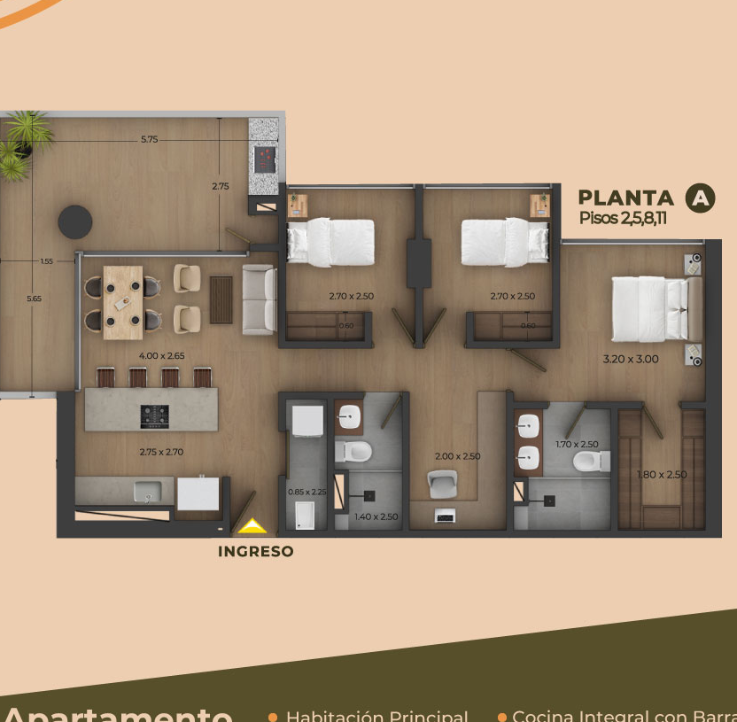 Armarios empotrados, Balcón, Baño auxiliar, Baño en habitación principal, Barra estilo americano, Clósets, Cocina integral, Depósito, Vista panorámica, Zona de lavandería, Cocina equipada, Cocina tipo americano, Sala de usos múltiples